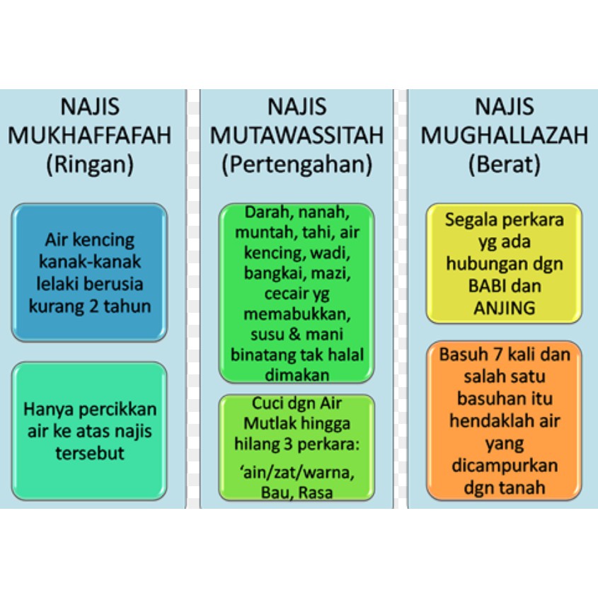 Terbahagi kepada tiga jenis iaitu najis mughallazah (najis berat) najis.